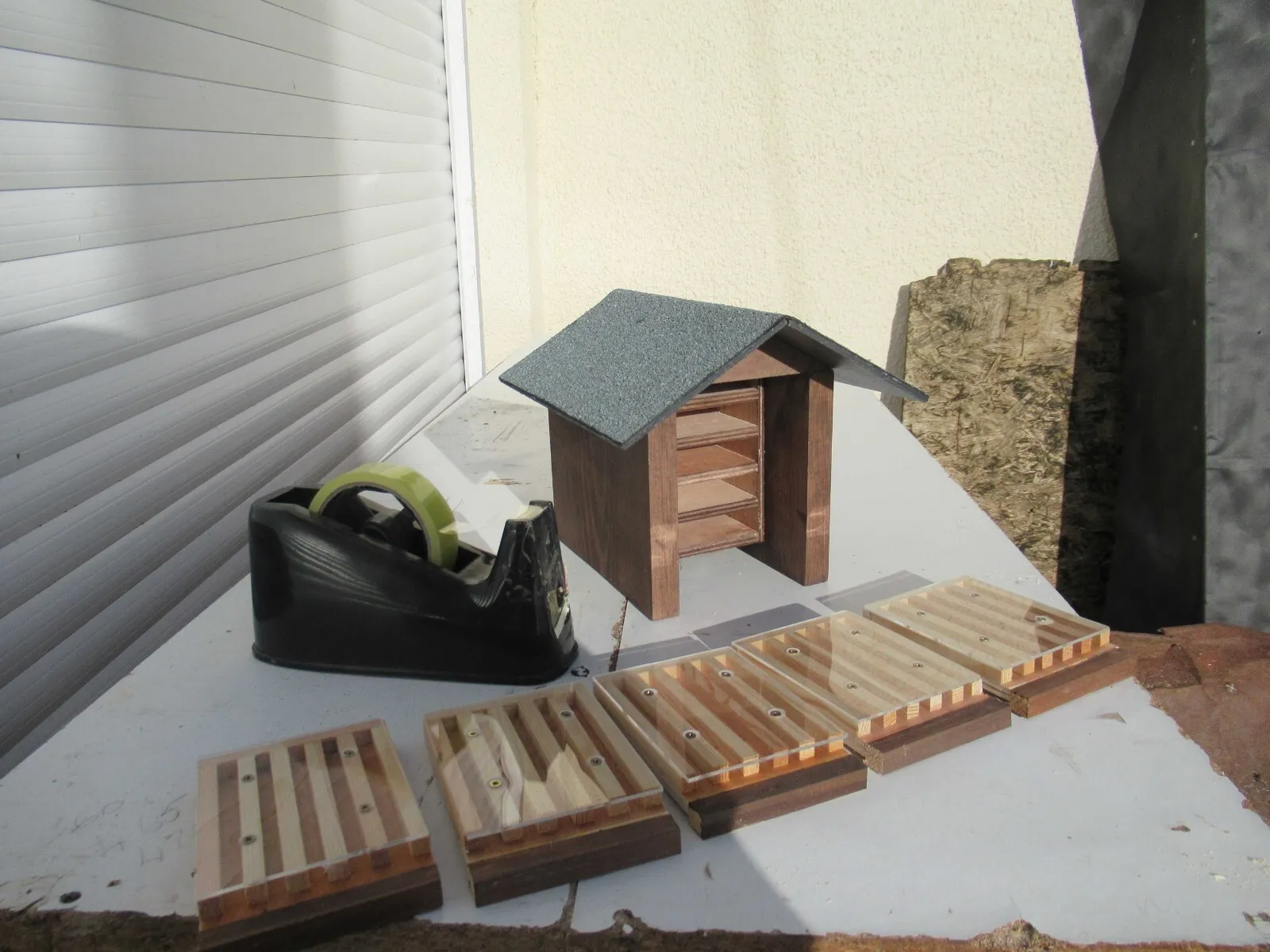 The hotel is made of ordinary, untreated Pinewood, stained with brown water-based colour.
